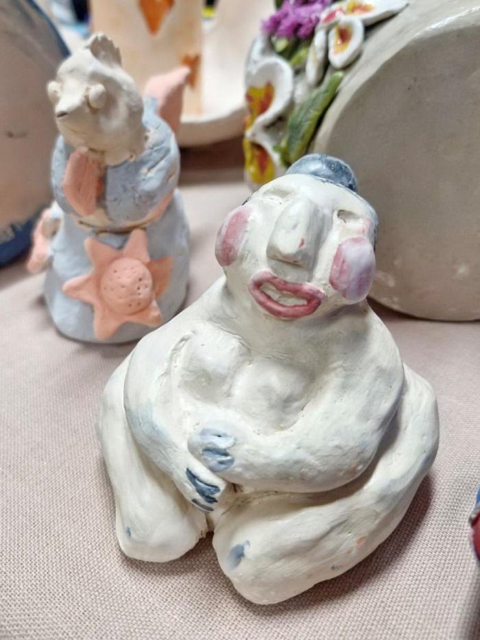 พี่ตุ่มเล่าว่าเป็นคนพิการกล้ามเนื้ออ่อนแรงจากจังหวัดสุโขทัย เห็นโครงการนี้แบบบังเอิญจากเฟซบุ๊ก จึงตัดสินใจสมัครแต่ในใจเต็มไปด้วยความกังวล เพราะไม่ได้ออกจากบ้านมานาน แถมไม่มีพื้นฐานงานปั้นหรืองานศิลปะเลย คนพิการอย่างเราจะทำได้จริงเหรอ เป็นคำถามแรกขึ้นมาในหัวเลย แต่โชคดีที่วันนั้นเราไม่ยอมแพ้ กลายเป็นการตัดสินใจที่พาเรามาเจอจุดเริ่มต้นครั้งใหม่ของชีวิตอย่างในตอนนี้