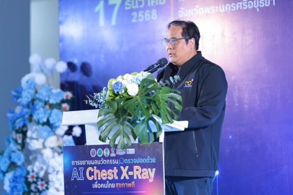 ดร.พันธุ์เพิ่มศักดิ์ อารุณี รักษาราชการแทนรองปลัดกระทรวงการอุดมศึกษา วิทยาศาสตร์ วิจัยและนวัตกรรม (อว.) เปิดกิจกรรมการขยายผลนวัตกรรม ตรวจปอดด้วย AI Chest X-ray เพื่อคนไทยสุขภาพดี ทีหอประชุมที่ว่าการ ต.คานหาม อ.อุทัย จ.พระนครศรีอยุธยา เมื่อวันที่ 17 ธ.ค.68 โดยดร.พันธุ์เพิ่มศักดิ์ กล่าวว่าการตรวจปอดด้วย AI Chest X-Ray เพื่อคนไทยสุขภาพดี เป็นความร่วมมือของหลายภาคส่วนภายใต้โครงการ One Day Service (ODS) นำองค์ความรู้ งานวิจัย และนวัตกรรมจากห้องแล็บให้บริการจริงในพื้นที่ ช่วยดูแล ป้องกัน รักษาโรคแก่ประชาชนอย่างเป็นรูปธรรมนวัตกรรม AI-assisted Chest X-Ray ช่วยให้การคัดกรองโรคปอดรวดเร็วและแม่นยำ เพิ่มการเข้าถึงบริการ ลดภาระบุคลากรทางการแพทย์ ยกระดับระบบสาธารณสุขโดยรวม ควบคู่กับการให้บริการสุขภาพแบบครบวงจร ทั้งกาย ใจ การคัดกรองโรคสำคัญ สะท้อนแนวคิดการดูแลสุขภาพเชิงป้องกัน