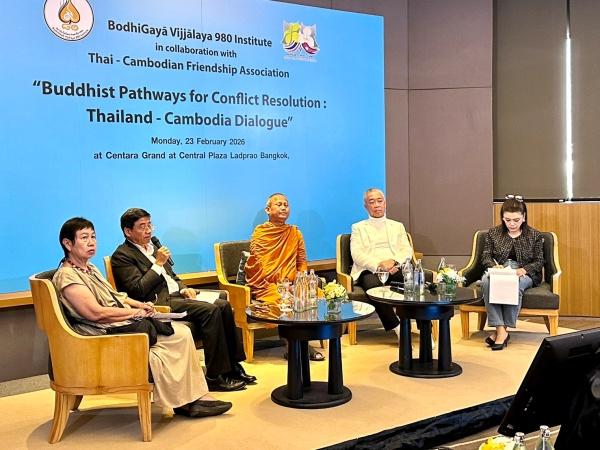 สถาบันโพธิคยาวิชชาลัย 980 องค์กรคลังปัญญาด้านพุทธศาสนา จัดเวทีเสวนา “วิถีพุทธกับการแก้ไขปัญหาความขัดแย้งไทย -กัมพูชา” เมื่อวันที่ 23 กุมภาพันธ์ 2569 เวลา 13.30 น. ที่ห้องกรุงเทพ โรงแรมเซ็นทารา ลาดพร้าว กทม. เพื่อร่วมกันแลกเปลี่ยนความคิดเห็นโดยใช้หลักพระพุทธศาสนาเป็นแนวทางหลักในการแก้ปัญหาความขัดแย้ง โดยมีผู้ร่วมเสวนาได้แก่ พระเมธีวรญาณ คณะบดีคณะพุทธศาสตร์ มหาวิทยาลัยมหาจุฬาลงกรณราชวิทยาลัย (มจร.) ดร.สุภชัย วีระภุชงค์ เลขาธิการสถาบันโพธิคยาวิชชาลัย 980 นายเชิดเกียรติ อัตถากร นายกสมาคมมิตรภาพไทย-กัมพูชา น.ส.สนิทสุดา เอกชัย นักสื่อสารมวลชน นักหนังสือพิมพ์ นักคิดนักเขียน และ น.ส.ตวงพร อัศววิไล เป็นผู้ดำเนินรายการ
