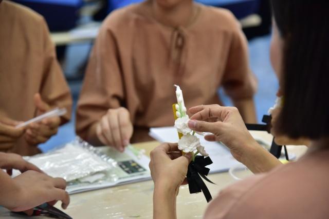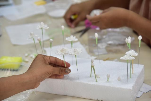 กิจกรรมเน้นการเรียนรู้แบบ Active Learning มีผู้ต้องขังหญิงในเรือนจำธัญบุรีเข้าร่วม 30 คน สอนเทคนิคการเปลี่ยนกระดาษทิชชูเป็นดอกมะลิที่มีความอ่อนช้อยสวยงามเสมือนจริง เทคนิคการเข้าช่อดอกไม้จันทน์ เพื่อถวายในงานพระราชพิธีถวายพระเพลิงพระบรมศพของสมเด็จพระพันปีหลวง
