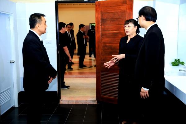 นางพัชรินทร์ พัดทอง ผู้ตรวจราชการ สำนักงานพระพุทธศาสนาแห่งชาติ ให้เกียรติรับมอบห้องน้ำปรับปรุงใหม่จาก นายยุทธศักดิ์ ภูมิสุรกุล ประธานเจ้าหน้าที่บริหาร บริษัท ซีพี ออลล์ จำกัด (มหาชน) เพื่อใช้รองรับการปฏิบัติธรรม การประกอบกิจกรรมทางศาสนา ให้แก่พระภิกษุสงฆ์ สามเณร พุทธศาสนิกชนและให้บริการแก่ประชาชนทั่วไปที่มาเยือนพุทธมณฑล