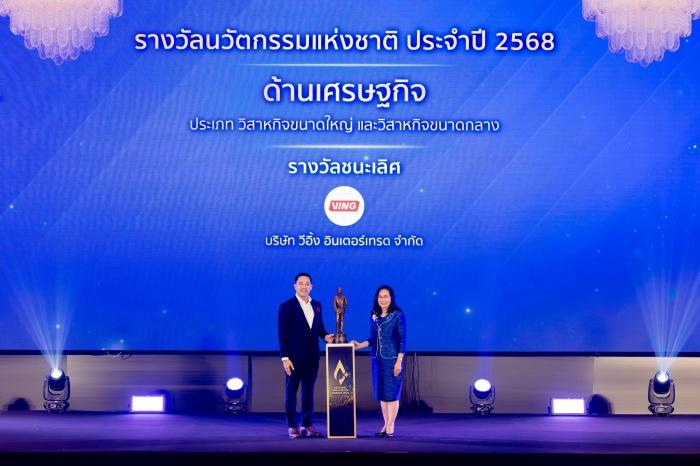 นายวาที กล่าวถึงการคว้ารางวัลชนะเลิศ “รางวัลนวัตกรรมแห่งชาติ ประจำปี 2568” ด้านเศรษฐกิจ ประเภทวิสาหกิจขนาดใหญ่และวิสาหกิจขนาดกลางจากสำนักงานนวัตกรรมแห่งชาติ (องค์การมหาชน) หรือ NIA ว่า VING พยายามยื่นเสนอผลงานในรางวัลนี้มาแล้วประมาณ 4-5 ปี แต่ด้วยรองเท้ารุ่นเดิมอาจดูไม่แตกต่างจากท้องตลาดมากนัก อีกทั้งเทคโนโลยีที่ใช้ก็ยังเป็นของที่มีอยู่ทั่วไป แต่ NIRUN มีความพิเศษตรงวัสดุที่ได้พัฒนาขึ้นมาเอง โดยใช้ระยะเวลาพัฒนาคุณสมบัติวัสดุยาวนานกว่า 3 ปี รวมกับดีไซน์ที่ไม่เคยมีมาก่อนในโลก จึงถือเป็นนวัตกรรมที่แปลกใหม่ เข้ามาช่วยแก้ไขข้อจำกัดของรองเท้าแตะสำหรับวิ่งในแบบเดิม