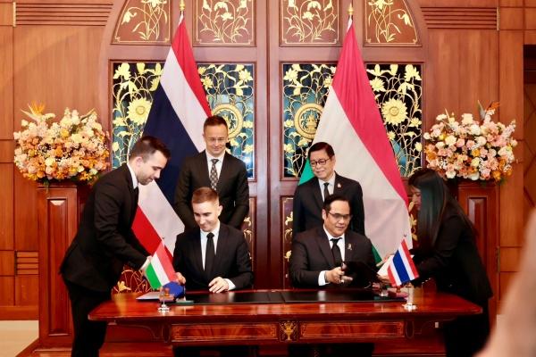 นายสีหศักดิ์ พวงเกตุแก้ว รองนายกรัฐมนตรีและรัฐมนตรีว่าการกระทรวงการต่างประเทศ Mr.Péter Szijjártó รัฐมนตรีว่าการกระทรวงการต่างประเทศและการค้า ประเทศฮังการี ร่วมเป็นสักขีพยานการลงนามบันทึกความเข้าใจว่าด้วยความร่วมมือภายใต้โครงการทุนการศึกษา Stipendium Hungaricum ปี 2026-2028 ระหว่าง ดร.พันธุ์เพิ่มศักดิ์ อารุณี รองปลัดกระทรวงการอุดมศึกษา วิทยาศาสตร์ วิจัยและนวัตกรรม(อว.) กับ Mr. Ádám Stifter รองปลัดกระทรวงการต่างประเทศและการค้า ประเทศฮังการี ณ กระทรวงการต่างประเทศ กรุงเทพฯ เมื่อวันที่ 4 กุมภาพันธ์ 2569
