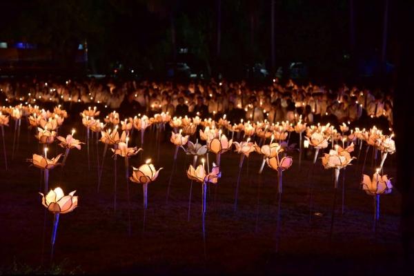 พร้อมกันนี้ ผู้เข้าร่วมงานได้รับชมการแสดงเชิญโคมประทีปปทุมาน้อมศรัทธาองค์อัคราภิรักษศิลปิน และร่วมจุดโคมประทีปฯ จำนวน 993 ดวง ที่ส่องสว่างไสวท่ามกลางเสียงเพลงสดุดีพระแม่ไทยที่ดังกึกก้องไปทั่วบริเวณ ซึ่งออกแบบโดย ผศ.วิจิตร สนหอม หัวหน้าสาขาวิชาคหกรรมศาสตร์ คณะเทคโนโลยีคหกรรมศาสตร์ สื่อความหมายถึงแสงแห่งปัญญา ดุจดอกบัวอันบริสุทธิ์ เพื่อเฉลิมพระเกียรติและน้อมสำนึกในพระมหากรุณาธิคุณขององค์อัคราภิรักษศิลปิน ผู้ทรงเป็นมิ่งขวัญและที่ยึดเหนี่ยวจิตใจของเหล่าพสกนิกรอย่างหาที่สุดมิได้