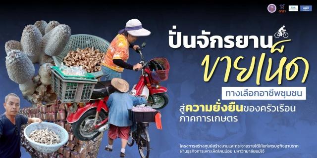 แก๊งปั่นจักรยานเหล่านี้ คือ ผู้กระจายสินค้า (Distributor) รายย่อยที่เป็นข้อต่อใหม่ ในห่วงโซ่คุณค่า (Value Chain) ผลผลิตของโครงการสร้างศูนย์สร้างงานและกระจายรายได้ให้แก่เศรษฐกิจฐานรากผ่านธุรกิจการเพาะเห็ดโคนน้อย ภายใต้กรอบวิจัยการพัฒนาขีดความสามารถของผู้ประกอบการในพื้นที่ บนฐานทรัพยากรพื้นถิ่น สร้างเศรษฐกิจฐานรากและเศรษฐกิจหมุนเวียนในพื้นที่ ปีงบประมาณ 2567 โดยการสนับสนุนของหน่วยบริหารจัดการทุนด้านการพัฒนาพื้นที่ ภายใต้การกำกับของสำนักงานเร่งรัดการวิจัยและนวัตกรรมเพื่อเพิ่มความสามารถการแข่งขันและการพัฒนาพื้นที่ (รวพ.)