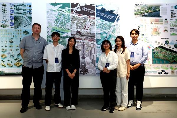 Assoc. Prof. Dr. Martin Schoch อาจารย์ที่ปรึกษากล่าวว่าให้โจทย์ที่ท้าทาย เปิดพื้นที่ให้ตัดสินใจ ช่วยตั้งคำถาม สร้างการเรียนรู้หลากหลายมุมมอง พาพวกเขาไปเห็นโอกาสและข้อจำกัด เมื่อนักศึกษาเข้าใจโลกตามจริง การออกแบบก็จะแก้ปัญหาได้จริง อย่ามองน้ำเป็นศัตรู เพราะเราไม่มีวันชนะธรรมชาติได้ ต้องเรียนรู้จังหวะของธรรมชาติ แล้วปรับจังหวะของเมือง ให้สอดคล้องกัน เพื่อเมืองที่จะปลอดภัยและน่าอยู่ขึ้นไปพร้อมกัน