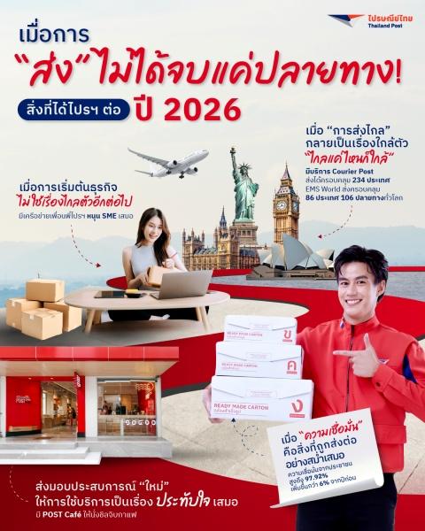 ในปี 2026 นี้จะไม่ใช่เรื่องของความเร็วหรือปริมาณการจัดส่งเพียงอย่างเดียว แต่คือ การที่ไปรษณีย์ไทยยังคงไปต่อกับ เศรษฐกิจ ชุมชน และไลฟ์สไตล์อย่างมีความหมายยิ่งขึ้น โครงข่ายไปรษณีย์จะยังคงทำหน้าที่เชื่อมผู้คน ธุรกิจ และเรื่องราว ในชีวิตประจำวันของคนไทย เข้าด้วยกันอย่างแนบเนียน และทำให้คำว่า “ส่ง” มีความหมายมากกว่าที่เคย มีบทบาทของการเป็นผู้ส่งทุกความ สัม พันธ์ สู่ทุกความสำเร็จให้สังคมไทยตลอดไป