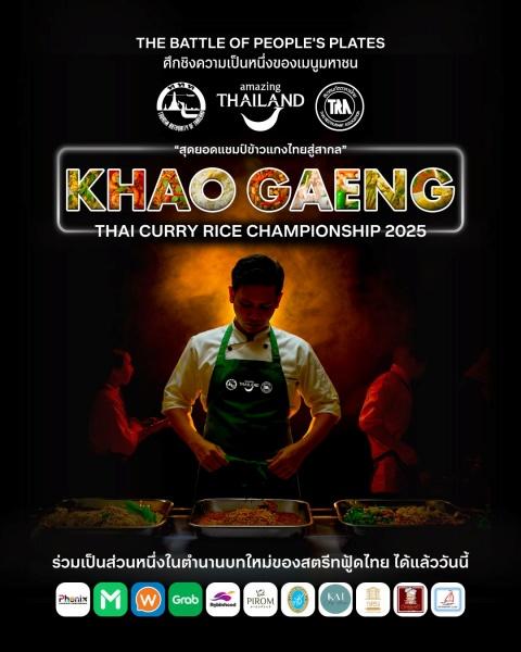 ททท.สมาคมภัตตาคารไทยบริการ food delivery จัดประกวดสุดยอดแชมป์ข้าวแกงไทยสู่สากล (“Khao Gaeng” Thai Curry Rice Championship 2025) ชวนยอดฝีมืออาหารไทยทั้ง street food จนถึงร้านในห้างฯประชันฝีมือ 5 เมนู ได้แก่ แกงเขียวหวานไก่, ต้มข่าไก่, พะแนงเนื้อ, ไข่พะโล้ และน้ำพริกกะปิ ชิงรางวัลแสนบาท