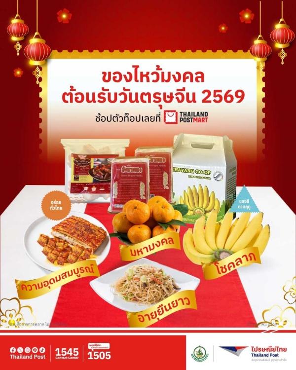 บริษัท ไปรษณีย์ไทย จำกัด ร่วมฉลองเทศกาลตรุษจีน ชวนคนไทยช้อปสินค้าตัวท็อปต้อนรับปีใหม่จีน เสริมความเฮง ความปัง และความสุขให้กับการเริ่มต้นปี ด้วยสินค้าคุณภาพหลากหลายหมวดหมู่ ทั้งของไหว้ตรุษจีน ของฝากและของขวัญความหมายดีจากทั่วประเทศ พร้อมจัดส่งตรงถึงบ้าน สะดวก ครบทุกความคุ้มค่าในที่เดียว ที่เว็บไซต์และแอปพลิเคชัน ThailandPostMart