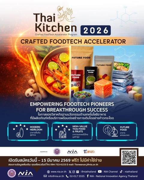 เอ็นไอเอหนุนฟู้ดเทค ติดสปีดครัวไทยสู่อาหารมูลค่าสูงรับดีมานด์ตลาดโลก เปิดโปรเจกต์ Thai Kitchen 2026 ยกระดับผู้ประกอบการ สร้างนวัตกรรมอาหาร เสิร์ฟอุตสาหกรรมอาหารแห่งอนาคตของโลก